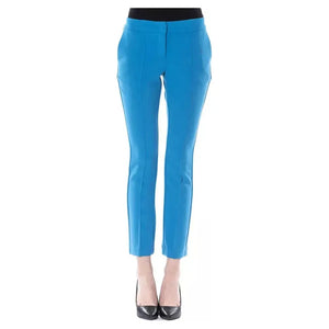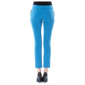 Elevate your wardrobe with a slice of Italian elegance courtesy of BYBLOS. These skinny pants blend sharp tailoring with a touch of stretch, ensuring a perfect fit that’s both comfortable and chic. The light blue hue softens your look while the lateral zip closure adds an unexpected, sleek touch. Adorned with a subtle frontal application, they exude sophistication for any fashion-forward enthusiast.