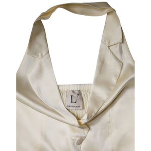L'Autre Chose Off White Silk Sleeveless Buttoned Halter Top