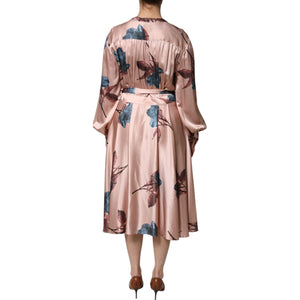 L'Autre Chose Pink Satin Floral Long Sleeves A-line Midi Dress