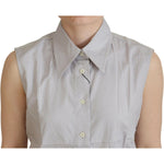 Ferre Light Gray Stripes Cotton Sleeveless Collared Top
