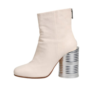 Maison Margiela White Calf Leather Can Heel Boots Shoes