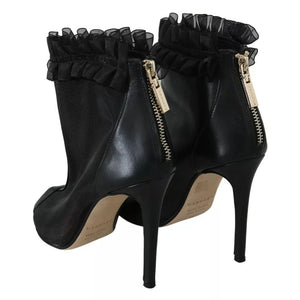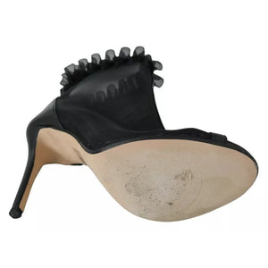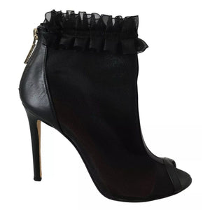 Mangano Black Leather Mesh Stiletto High Heels Peep Toe Boots Shoes