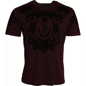 • Dolce & Gabbana Maroon DG Crown Floral Crewneck Men T-shirt
