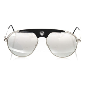 Elevate your style quotient with the edgy sophistication of Frankie Morello’s Shield Sunglasses. Boldly constructed with a striking metal profile and a sleek black central rod, these sunglasses boast smoke gray lenses that exude a mysteriously chic allure. Perfect for the fashion-forward individual who commands attention and appreciates Italian craftsmanship.