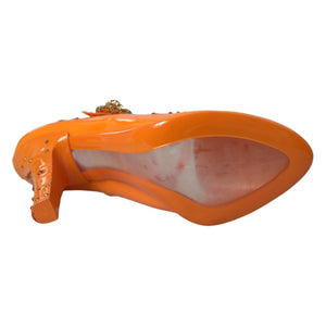Dolce & Gabbana Orange CINDERELLA Floral Crystal Pumps Shoes