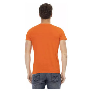 Elevate your wardrobe with the striking Trussardi Action short sleeve t-shirt, a true testament to bold sophistication. This round-neck tee, in a vibrant orange hue, boasts a front print that makes a confident statement. Crafted with the finest blend of cotton and viscose and hailing from BD, it’s where comfort meets contemporary trendsetting. Join the fashion-forward with Trussardi Action.