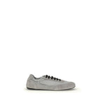 Prada’s Sneakers feature a round toe and suede details, with front lace-up closure for a comfortable fit. The brand’s iconic monogram can be seen in contrast on the front, while the elasticized ankle lap ensures added comfort. The flat rubber sole provides stability and durability, completing the look with a distinctive style touch.