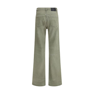 R13’s Jane Jeans reinterpret the classic flare pattern with a contemporary, punchy twist. Featuring a traditional five-pocket construction, they have a waistband with belt loops and a front zipper and button closure. The flared cut flatters the figure, making them a versatile garment perfect for creating both casual and sophisticated looks.
