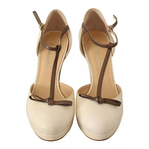 SERGIO LEVANTESI Beige T-Strap Block Heels Pumps Leather Shoes