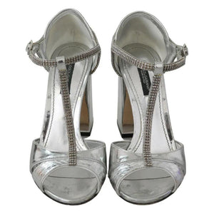 Dolce & Gabbana Silver Crystals T-strap Sandals Leather Shoes
