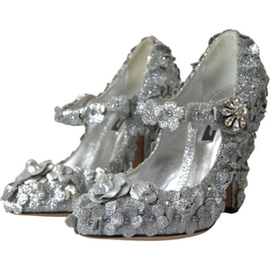 Dolce & Gabbana Silver Floral Crystal Mary Jane Pumps Shoes
