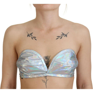 Dolce & Gabbana Silver Holographic Effect Bustier Brassiere Top