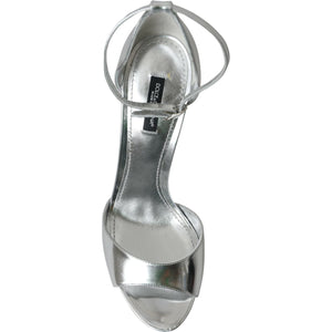 Dolce & Gabbana Silver KEIRA Leather Heels Sandals Shoes