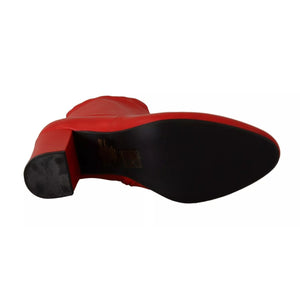 Steve Madden Red Leather Block Heels Ankle Boots Shoes