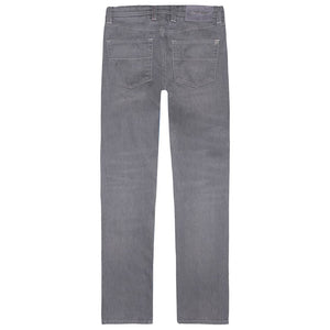 Elevate your denim collection with the distinguished touch of Tramarossa. These exquisite gray jeans blend traditional tailoring with a modern edge, crafted from premium cotton with a hint of elastane for comfort. The white stitching accentuates their refined cut, and the plush gray suede patch featuring a metal logo adds an emblem of luxury to your everyday style. Made in Italy, these are not just jeans; they’re a statement.