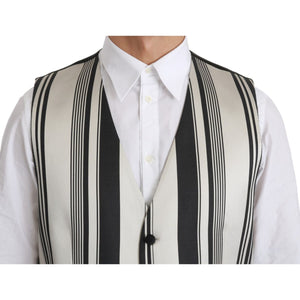 Dolce & Gabbana White Black Stripes Waistcoat Formal Vest