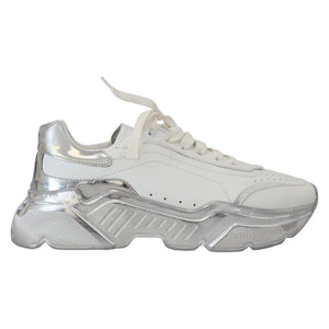 Dolce & Gabbana White Silver Leather Daymaster Women Sneakers Shoes