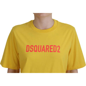 Dsquared² Yellow Logo Print Cotton Crewneck Easy Tee T-shirt
